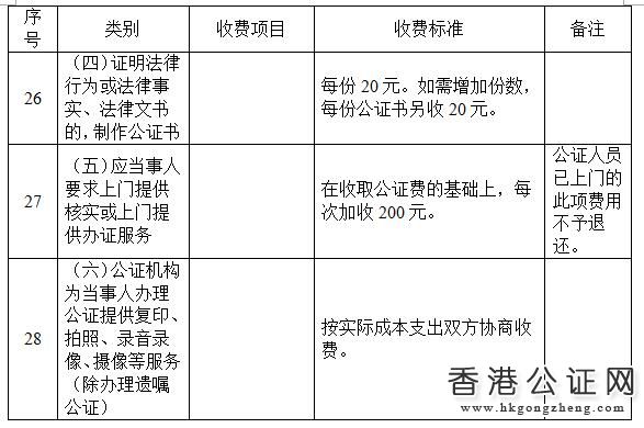 江蘇省公證服務(wù)收費(fèi)項(xiàng)目和試行標(biāo)準(zhǔn)表