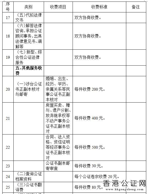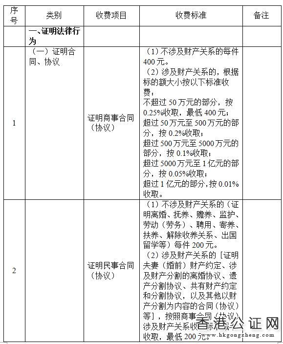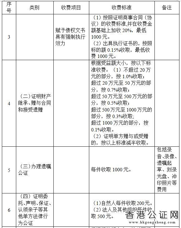 江蘇省公證服務(wù)收費(fèi)項(xiàng)目和試行標(biāo)準(zhǔn)表